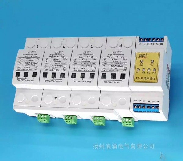 T1级125KA浪涌保护器带RS485通讯接口,适合国网公司居配工程使用的产品,型号是YLSP-T1-15/4-385v T1级浪涌保护器10/350波形Iimp=15KAT1级125KA浪涌保护器带RS485通讯接口