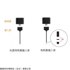 全植入式无线光遗传和电刺激系统由主机、全植入式植入体和充电盒组成。植入体末端含超微型 LED 或者刺激电极,全植入式植入体可以免去任何操作,直接将植入体完全植入到动物体内即可对指定位点给光刺激或电刺激,全植入式植入体可以重复使用,其尖端可以拆卸后重新焊接。充电盒可以在动物自由运动时对其进行无线无干扰充电。