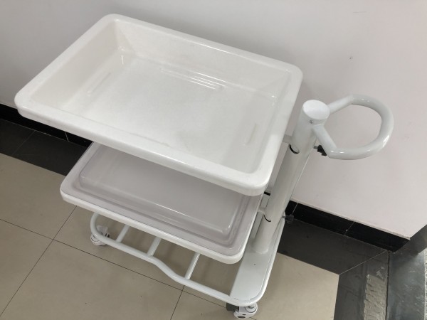 内窥镜转运车车体由钢管无缝焊接而成,具有耐腐蚀、不粘水、车行顺畅、取放方便等优点。盘体采用PMMA高分子复合材料一次成型,二层设计使客户在使用过程中可将清洁和污染的内镜分层标明后置放,可达到高效周转,避免交叉感染等功效。