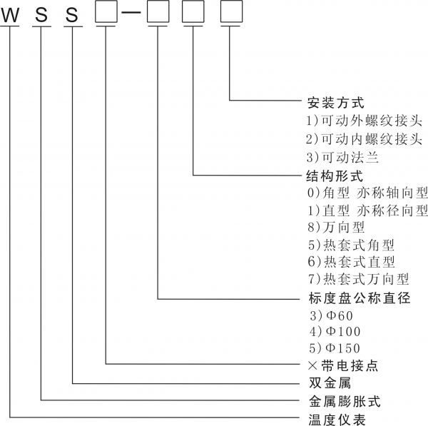 ●温度计指示部分:(按温度计标度盘的外径表示)分Φ60、Φ100、Φ150mm