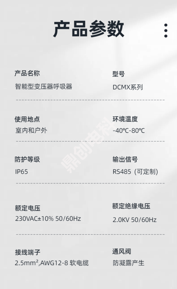 免责声明:以上所展示的[DCMX系列 智能型变压器免维护呼吸器]信息由会员[武汉鼎创电力科技有限公司]自行提供,内容的真实性、准确性和合法性由发布会员负责。