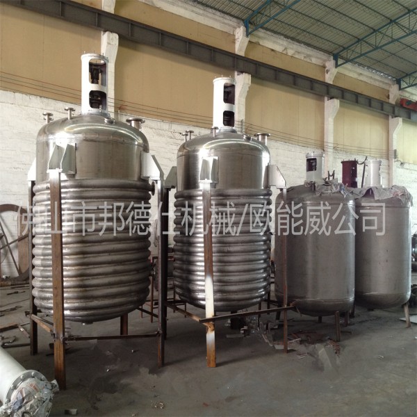3、反应釜加热方式有电加热式、夹套加热式、外半管加热式和内盘管冷却式反应釜。