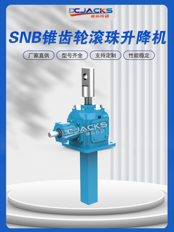SNL锥齿轮梯形丝杆升降机使用效率相较于涡轮丝杆升降机较高,且容易调整减速比,他的效率高,使用寿命长,同时具有结构紧凑、体积小,重量轻、动源广泛、噪音、安装方便、使用灵活、功能多、可靠性高等许多优点。具有提升、降落、推进、翻转等多功能、能按一定程序准确地控制调整提升或推进的高度。可以用电动机或其他动力直接带动,也可以手动。高输入转速1500r/min,最高提升速度2.7m/min。