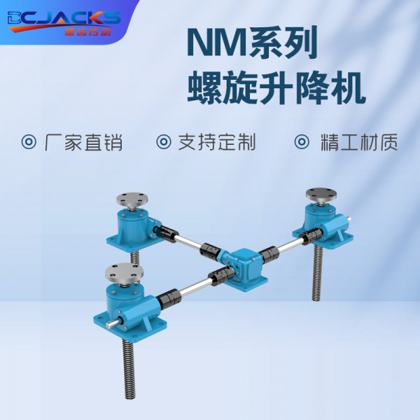 NM蜗轮丝杆升降机具有结构紧凑、体积小、重量轻、动力源广泛、无噪音、安装方便、使用灵活、功能多、配套形式多、可靠性高、使用寿命长等许多优点。可以单台或组合使用,能按程序准确地控制调整提升或推进的高度,可以用电动机或 其他动力直接带动,也可以手动。它有不同的结构形式和装配形式,且提升高度可按用户的要求定制。