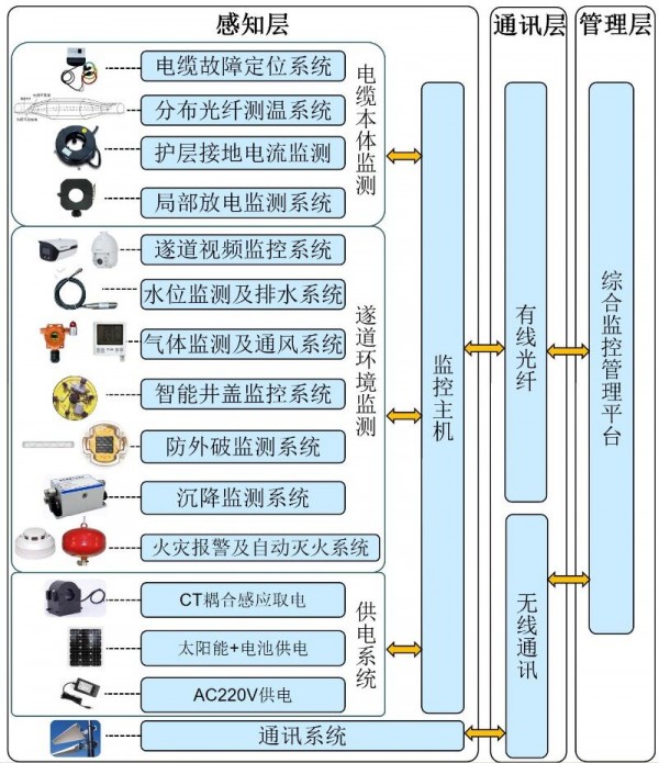 1.分布式设备监控系统建设架构:该系统采用分布式架构,能够实现对电缆隧道的监测管理。