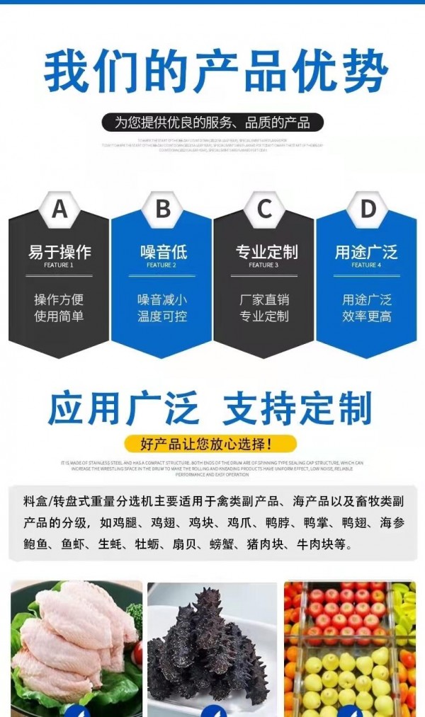 免责声明:以上所展示的[BLFE-4-20级 牡蛎分选机海蛎子扇贝大虾鱼海鲜重量多级机分拣机]信息由会员[山东宝利菲尔机械科技有限公司]自行提供,内容的真实性、准确性和合法性由发布会员负责。