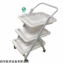 韵华内窥镜转运车普通款两层设计的配置:车体、方向轮、托盘、PMMA透明盖、把手、螺丝配件等。