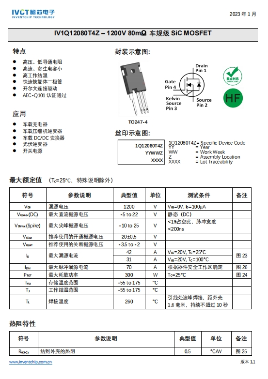 IV1Q12080T4Z SIC MOSFET 1200V]信息由会员[