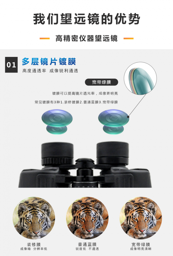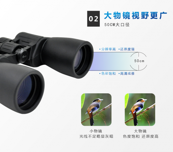 50mm口径,更大广角、视野清晰具有更好的观测效果。