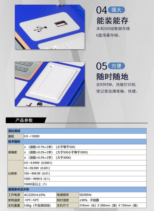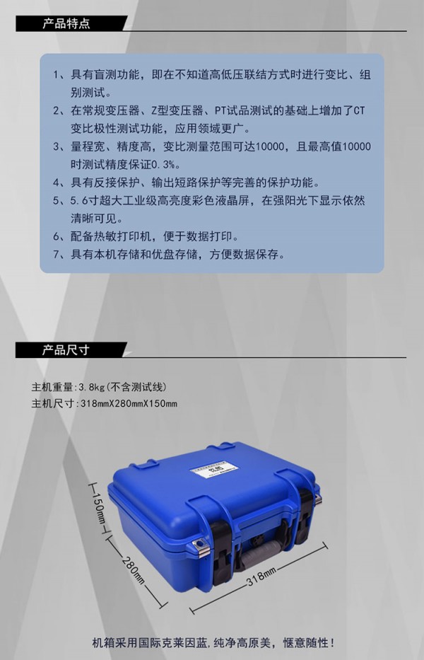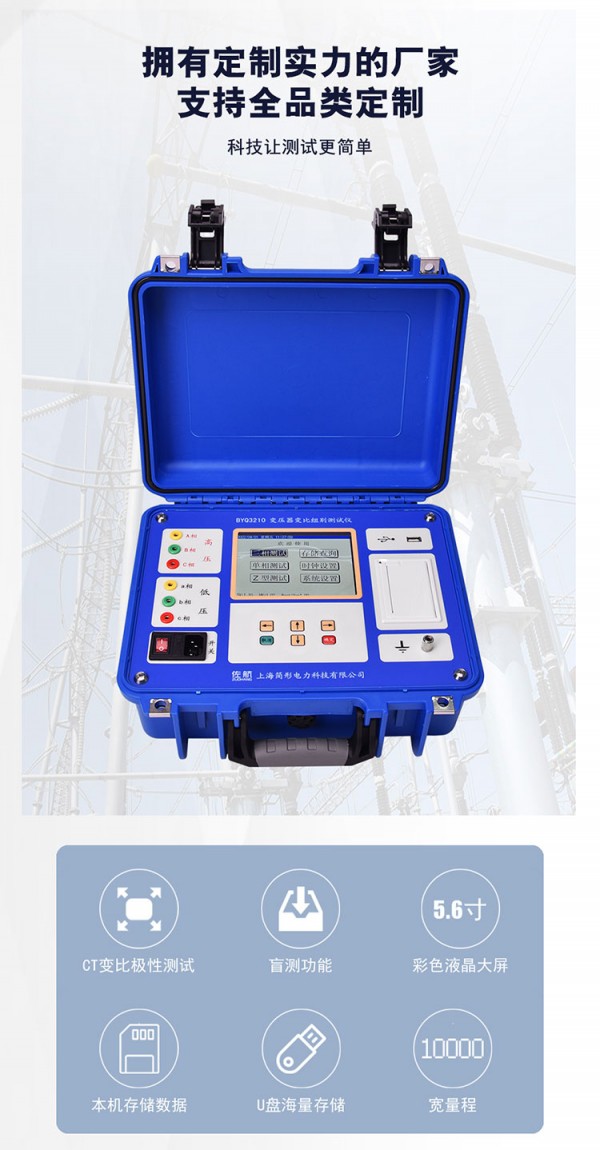 3)规变压器、Z 型变压器、PT 试品测试的基础上增加了 CT 变比极性测试功能,应用领域更广。