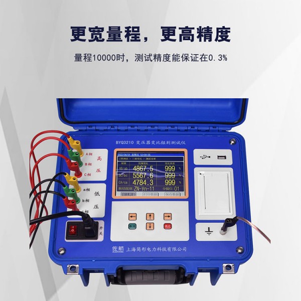 佐航BYQ3210变压器变比组别测试仪适用于常规变压器、Z型变压器的变比组别测试,PT、CT 的变比极性测试,测试速度快、准确度高。