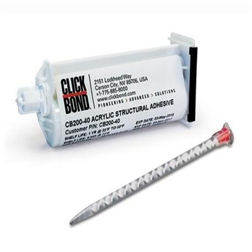 CLICK BOND粘合剂套件提供 CB200-40 墨盒和混合头。CB200 丙烯酸粘合剂是一种两部分的触变糊状粘合剂,能够粘合各种金属、工程热塑性塑料和复合材料。CB200 在室温下快速固化,并表现出优异的耐环境和耐化学性。CB200 粘合剂取代了焊接、铆接和其他机械紧固方法。CB200 包装在 8:1 盒中,建议用于安装CLICK BOND粘合剂粘合紧固件。
