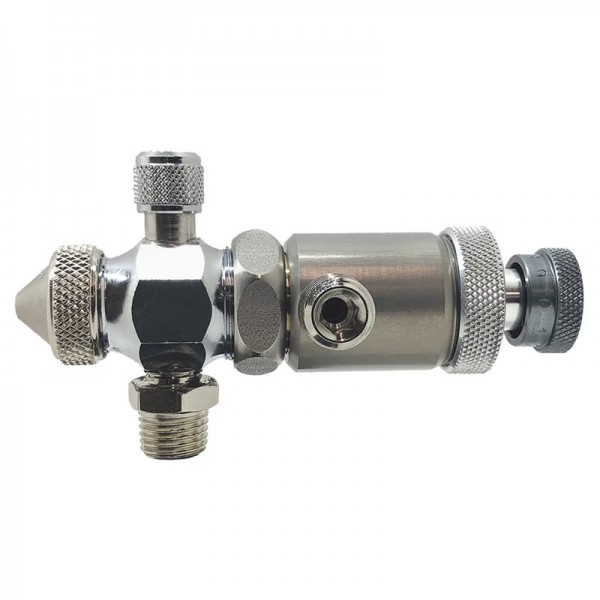A-JUN自动喷枪有一个流体和一个空气端口。雾化空气具有调节针阀,用于微调雾化。