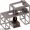 机架分为滚轮转动机构部分和底板移动机构部分。滚轮转动机构部分提供试验负载的碾压力,以及转动换算的(8±2)km/h碾压速度,由大功率电机驱动,且垂直方向设置有导向弹性装置,在碾压试样时可自然上升。