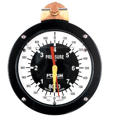 一个标准的指针提供了一个完整的360度扫描表盘,而一个游标指针提供4到1的分辨率来指示即使是微小的压力变化。该系统由一个6英寸的压力表,一个压力表保护器和一个高压软管。
