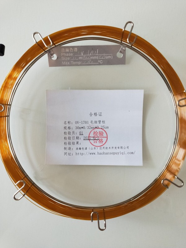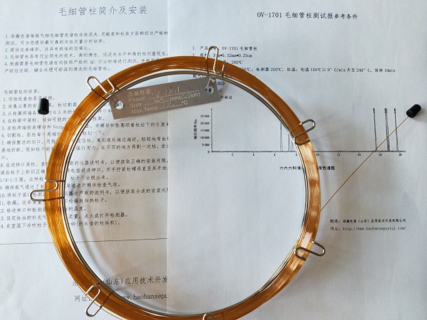 4.根据需要毛细管色谱柱均按照严格的 行业标准进行测试,并根据需求与实际应用,生产经过交联、键合处理可耐溶剂清洗的毛细管柱。