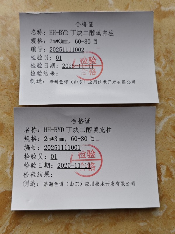 浩瀚色谱(山东)应用技术开发有限公司,研制生产研究了丁炔二醇的气相色谱分析方法,采用《丁炔二醇的测定填充色谱柱应用岛津GC14C》