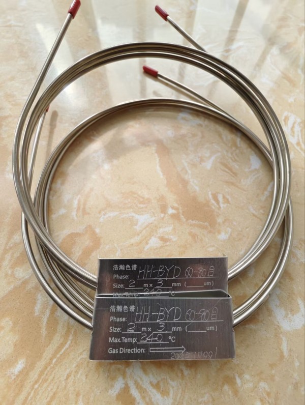 浩瀚提供的每一根色谱柱均经过老化,为您获得的分析分离效果,请在使用前再老化1-2小时。老化时,应先通载气10min左右,待柱内空气置换干净后,再用程序升温升至使用温度老化。