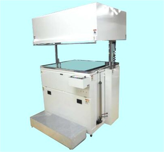 本设备是为中型网板而开发疑似平行光压着式下光源曝光机。采用了3KW金属卤化灯光源、Fresnel lens 和累计光量计,任谁都可以简单进行高精度曝光作业。另外,紧贴方式采用了独自的压着方式。