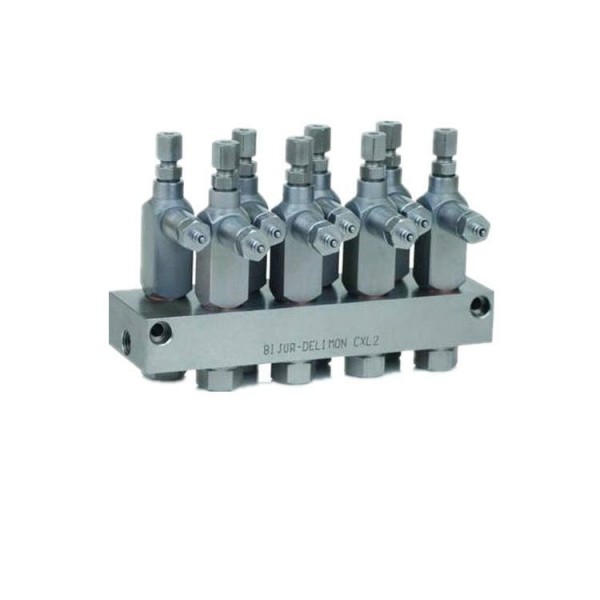 美国Farval开式齿轮喷油雾润滑系统开式齿轮喷油雾润滑系统已广泛用于电厂、矿山、水泥、造纸等设备的大型开式齿轮副的润滑冷却。如:球磨机、回转窑、干燥机等。通过使用该系统,可提高大型、重载开式齿轮副的寿命,减少停机时间及降低维修费用。齿轮可润滑宽度为50mm至1.06m。间断的喷油雾为齿轮提供了持久的油膜。控制器可设置多种润滑周期,并有故障监控功能和喷嘴“后吹”功能。技术参数工场气源压力要求: 0.4-0.8MPa 喷嘴到齿轮节圆距离: 203mm 喷油雾面直径: Φ127mm (距喷嘴203mm处) 电源电压: 110VAC/220VAC 喷嘴数量: 1–8个被润滑齿轮宽度: 50.8mm - 1066.8mm 气体消耗量: 约2.5米3/小时 喷嘴组件的安装要求喷嘴组件在开式齿轮防护罩上的安装位置及安装角度,对齿轮的润滑效果有很大影响。请按图所示的要求正确安装。整体式双线喷油雾润滑系统LD-13098-1介绍 该装置是将分配器安装组件和喷嘴安装为一体,内含四个喷嘴。其结构紧凑,专门用于齿宽为508mm 开式齿轮喷油雾润滑。程控器SS4500或SM-E 能对润滑系统的润滑周期、喷嘴净化进行编程,对故障进行监控。(集中润滑专家)BIJUR-DELIMON润滑集团系集中润滑领域,旗下拥有FARVAL,BIJUR,DELIMON,DENCO,LUBESITE、LUBRIMONSA...等多个品牌,在美国、德国、英国、爱尔兰等地设有生产基地。 FARVAL,BIJUR,DELIMON,DENCO,LUBESITE、LUBRIMONSA...提供润滑产品有:各种润滑油(稀油)/润滑脂(干油)类的手动/电动/气动润滑泵、稀油站;各种油脂输送泵、PLC控制器、分配器;特种润滑设备及各种附件等,涉及润滑系统包括各类单、双线集中润滑系统(阻尼式SLR、容积式PDI、递进式PRG);FARVAL开式齿轮喷油雾润滑系统、BIJUR钢丝绳自动润滑器、底盘润滑系统、机车轮轨润滑系统、风力发电自动润滑系统、喷雾冷却润滑系统;油气润滑系统及各种润滑附件。各类液压元件、液压润滑泵站、各种液压站;各种稀油润滑泵站;各种输油输脂设备;特种润滑设备等。 控制器 SS2200