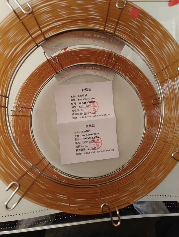 4.根据需要毛细管色谱柱均按照严格的 行业标准进行测试,并根据需求与实际应用,生产经过交联、键合处理可耐溶剂清洗的毛细管柱。