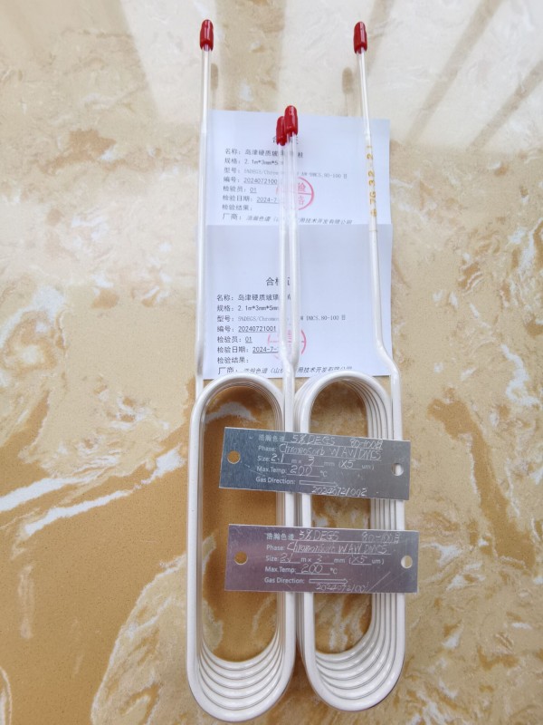 4.根据需要毛细管色谱柱均按照严格的 行业标准进行测试,并根据需求与实际应用,生产经过交联、键合处理可耐溶剂清洗的毛细管柱。