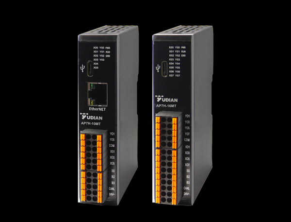 AP7H-10MT:6 点输入,4 点输出可编程控制器,RS485(2 路),CAN,带网口 Ethernet*1,高速 输入最大支持 6 路 100KHz(出厂默认为 4 路,需要 6 路时需特殊说明),高数输出 3 路 100KHz(并发时三路总输出频率最大为 150KHz)。