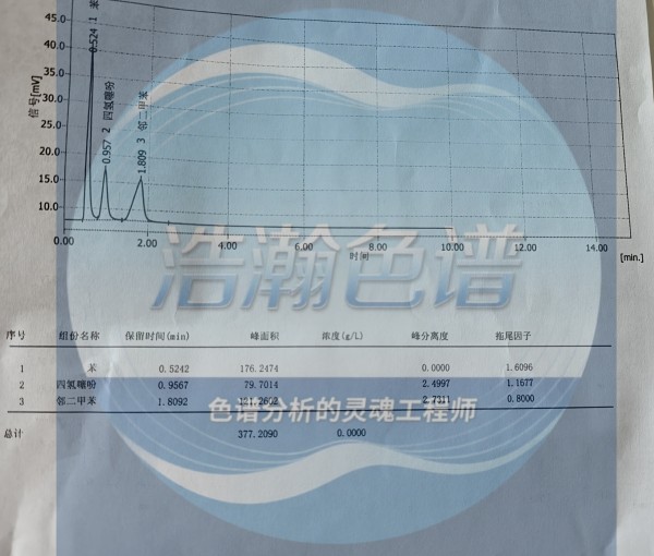 气相色谱法快速测定天然气中四氢噻吩应用PE580 测试谱图: