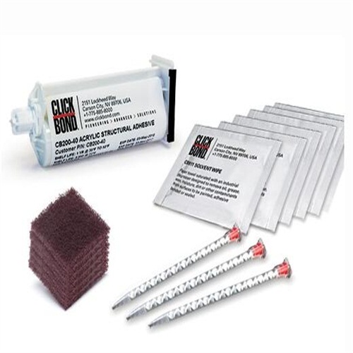 CLICK BOND粘合剂套件提供 CB200-40 墨盒和混合头。CB200 丙烯酸粘合剂是一种两部分的触变糊状粘合剂,能够粘合各种金属、工程热塑性塑料和复合材料。CB200 在室温下快速固化,并表现出优异的耐环境和耐化学性。CB200 粘合剂取代了焊接、铆接和其他机械紧固方法。CB200 包装在 8:1 盒中,建议用于安装CLICK BOND粘合剂粘合紧固件。