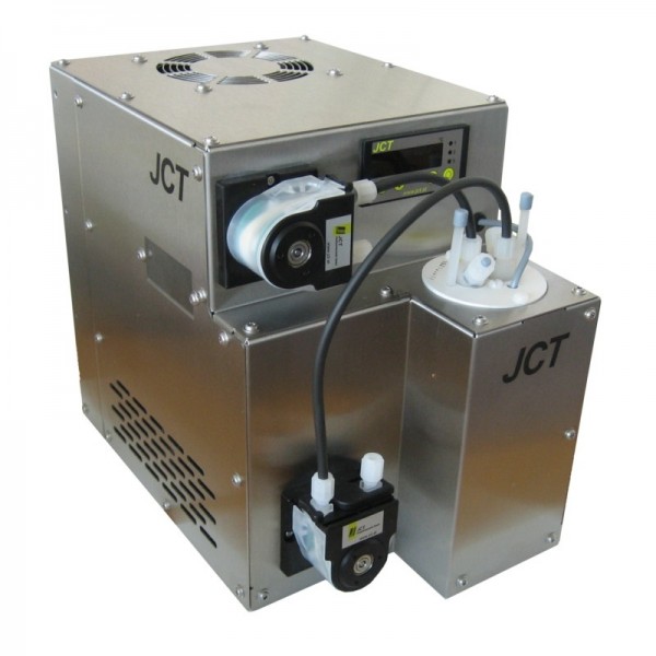 JCT冷凝器主要用于降低样气中的露点,分离分析系统里湿气中的水蒸气,为气体分析之前的设备提供干燥样气。该冷凝器设计有改良的比例温度控制器和高性能热交换器,冷却系统采用材料 R134a 作冷却剂的压缩机,热交换器装在铝质圆柱筒里,内置冷凝泵可不断排放冷凝物。紧凑型冷凝器为单气路,中型冷凝器有单气路或双气路,热交换器材质可选 PVDF、不锈钢或玻璃。