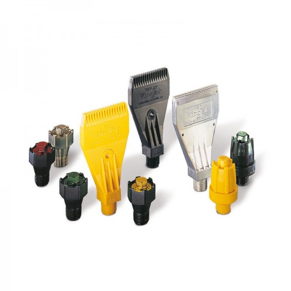 非标准空气雾化喷嘴对液体、雾化空气和风扇空气压力进行单独控制,以微调流量、液滴尺寸、喷雾分布和覆盖范围。包括清洁和/或截流喷针,有数百种容量不一和避免喷嘴喷孔周围堆积的防挂须空气帽可供选择。