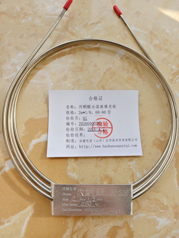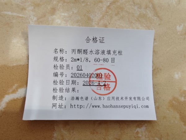 丙tong醛没有现成的气相色谱法测定,浩瀚色谱(山东)应用技术开发有限公司,研制《丙TONG醛水溶液专用色谱柱应用岛津GC14C 》,建立bing酮醛测定的气相色谱法,效果良好,结果满意。