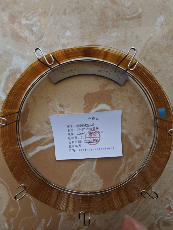4.根据需要毛细管色谱柱均按照严格的 行业标准进行测试,并根据需求与实际应用,生产经过交联、键合处理可耐溶剂清洗的毛细管柱。