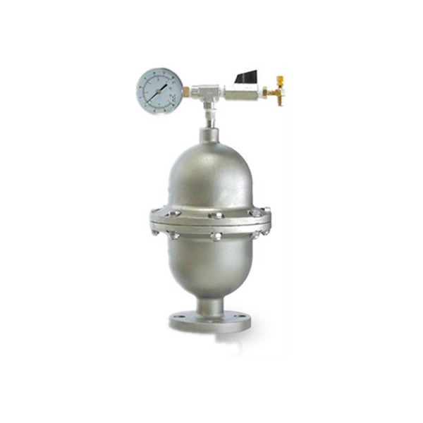 BLACOH脉动阻尼器内部有一个灵活的气囊,当充气适当的时候,它可以吸收流体的脉动能量,将流体的动能转化为气囊的弹性势能,从而使流体流动和压力更加平稳,减少系统波动造成的损害。浪涌抑制器则通过积聚和释放过程流体,减缓流体速度的变化率,防止水锤现象的发生。